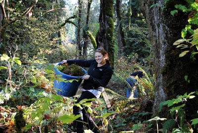 Anyway, one of the things my mom loves to do for her garden is gather wild moss to use in flower boxes and arrangements. It grows on every surface up there and peels off in big patches and long strips. I didn't understand its charm at first, but now the adventurous kid in me loves climbing over fallen trees and exploring the forest for moss... and the competitive kid in me loves finding the biggest piece EVER to impress my mom.